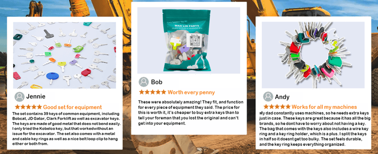 Widely Application: Whether you are a construction worker, contractor, truck driver, equipment mover or operator, or just for home use, you will need some spare keys for equipment. These construction machines are all different brands and ages, so this universal key set will be perfect for you