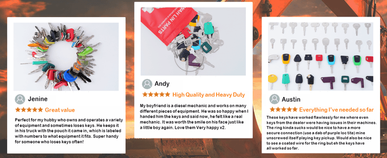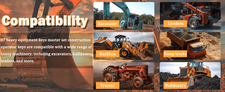 Suitable For Many Heavy Equipment: Our heavy construction equipment keys are suitable for including excavators, loaders, backhoes, tractors, dump trucks, bulldozers, etc. and can perfectly meet your needs.