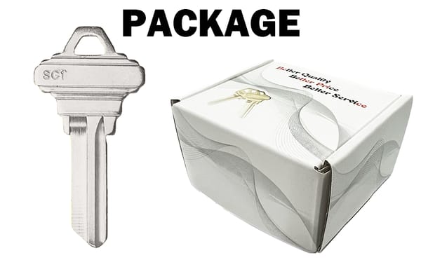 Packaging: 100 uncut blank key blanks (SC1) in a sturdy box that makes it easy to carry.